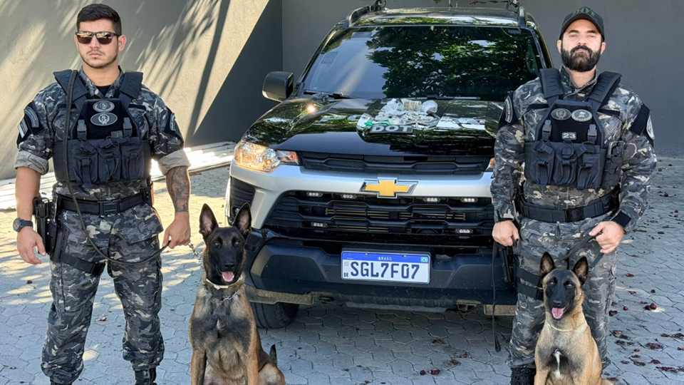 Ao verificar o ponto indicado pelo animal, a equipe encontrou o material escondido dentro de uma sacola plástica. No local foram apreendidos nove pinos contendo substância análoga à cocaína, uma pedra de substância semelhante ao crack pesando aproximadamente 10 gramas, além de um pino contendo substância análoga ao crack. Também foram localizadas 43 buchas e aproximadamente 120 gramas de substância semelhante à maconha.