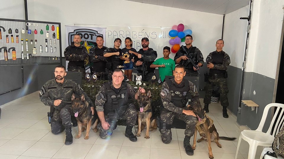 Na manhã dessa quinta-feira (02), uma menina de oito anos recebeu na casa dela uma visita surpresa dos policiais penais da Divisão de Operações Táticas (DOT). A pequena Miriam é fã da Polícia e sonhava em comemorar o aniversário com uma farda policial.